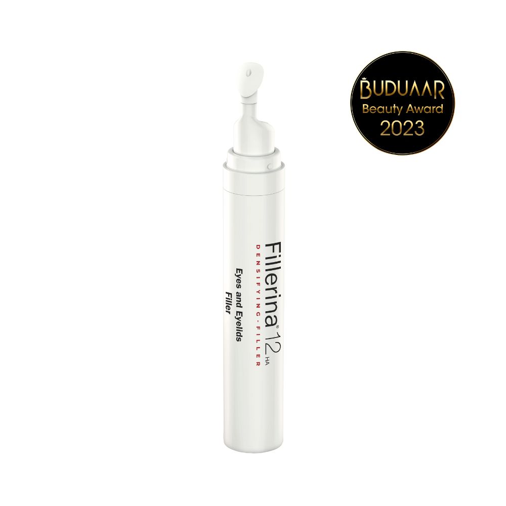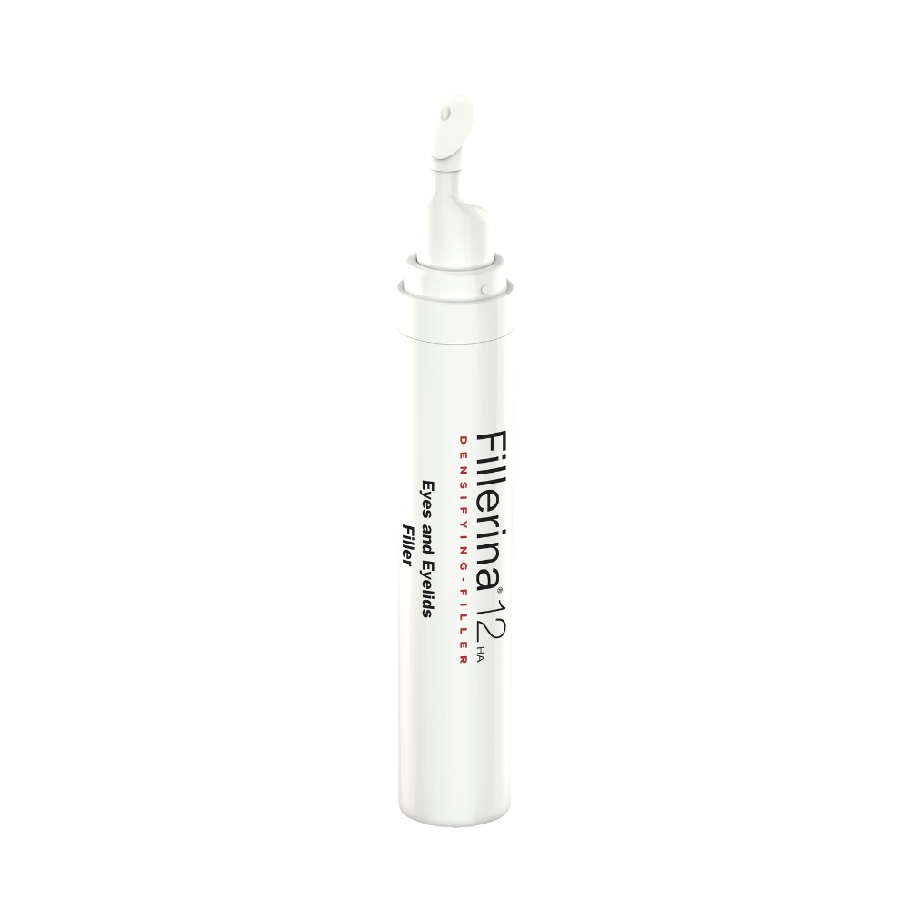 Fillerina 12HA tihendav täiteaine silmadele ja silmalaugudele on dermakosmeetiline geelhooldus, mis sisaldab kõrgelt moduleeritud 12 hüaluroonhappe molekuli kontsentratsioon. Seda on täiendatud erineva molekulmassiga 3 kollageeni ja 2 elastiini molekulidega, et anda silmakontuuri ja silmalaugude kudedele pinguldatud efekti ja plastilisust. Atsetüülheksapeptiid-30 toetab kortsudevastast toimet silmakontuurile ja silmalaugudele, vähendades naha mikro-kokkutõmbeid, mis toovad naha miimikajooni rohkem esile (aktiivse koostisosa test).